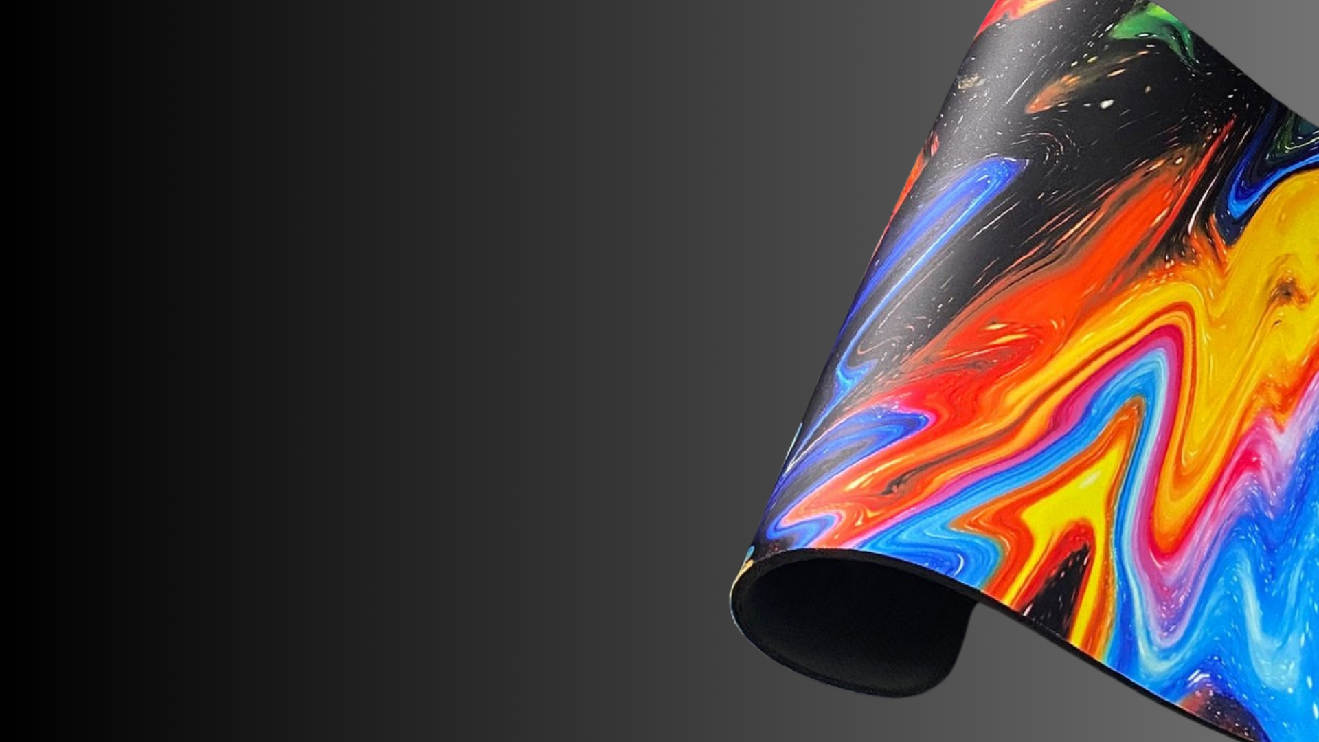 Soft polyester top fabric, 5mm thick areated closed cell flexible rubber foam, non-slip textured bottom
